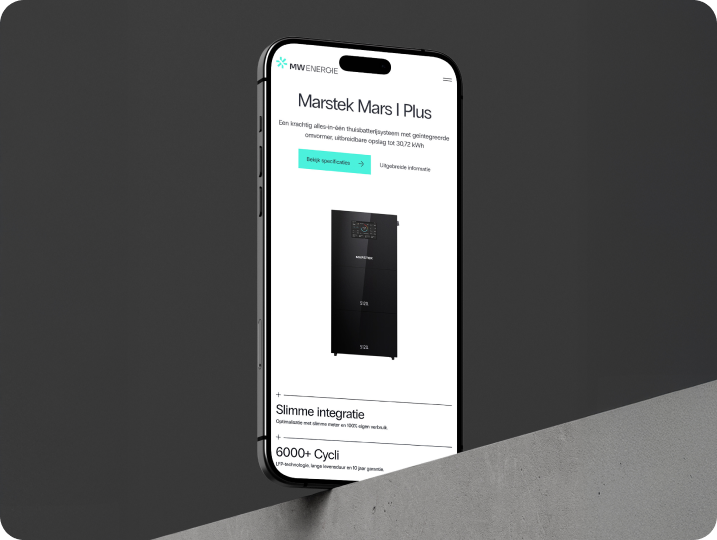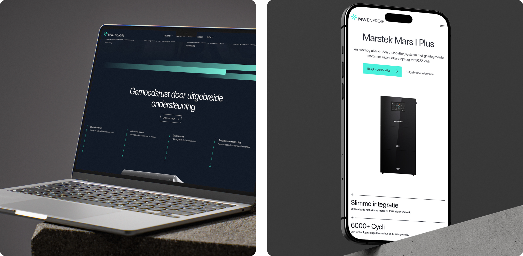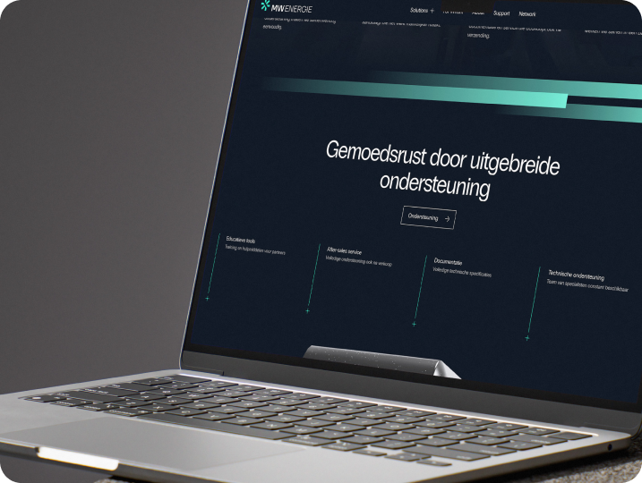 Voor MW Energie ontwikkelden we een krachtige branding en positionering die hun visie en waarden duidelijk naar voren brengt. Van een onderscheidende visuele identiteit tot een volledig vernieuwde website: alles is ontworpen om MW Energie te laten uitblinken en hun verhaal helder en professioneel over te brengen.